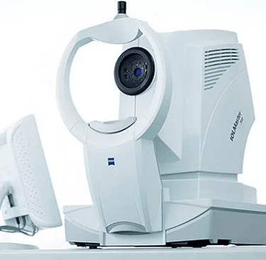 Preparação: O paciente senta-se em frente ao equipamento e é solicitado a fixar o olhar em um ponto luminoso.