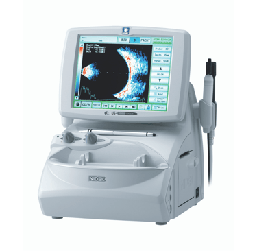 Preparação: O paciente é posicionado em uma cadeira confortável. Um gel condutor é aplicado sobre a superfície do olho ou ao redor da área orbitária para melhorar a condução das ondas sonoras.